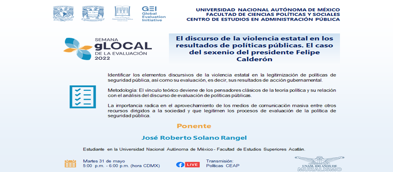 Identificar los elementos discursivos de la violencia estatal en la legitimización de políticas de seguridad pública, así como su evaluación, es decir, sus resultados de acción gubernamental. Metodología: el vínculo teórico deviene de los pensadores clásicos de la teoría política y su relación con el análisis del discurso de evaluación de políticas públicas. La importancia radica en el aprovechamiento de los medios de comunicación masiva entre otros recursos dirigidos a la sociedad y que legitimen los procesos de evaluación de la política de seguridad pública.