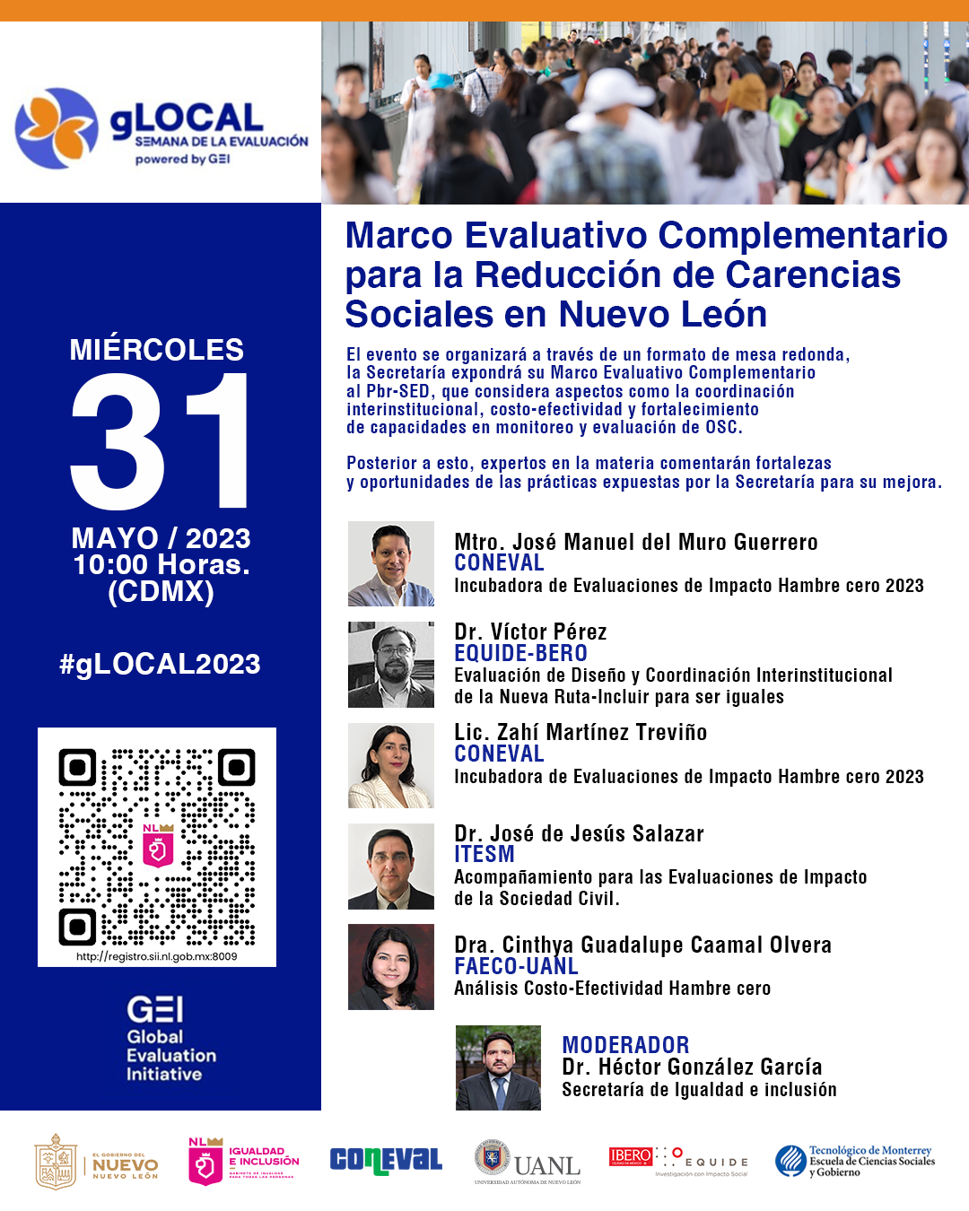 En un formato de panel de discusión, la Secretaría de Igualdad e Inclusión presentará su marco evaluativo complementario al Presupuesto Basado en Resultados - Sistema de Evaluación del Desempeño (PbR-SED), desarrollado bajo buenas prácticas nacionales e internacionales, orientado a la reducción de carencias sociales. Después de dicha exposición, un panel de expertos del Sector Académico, Organizaciones de la Sociedad Civil, Organismos Internacionales y CONEVAL darán aportaciones desde sus áreas de expertise para fortalecer dicho marco.