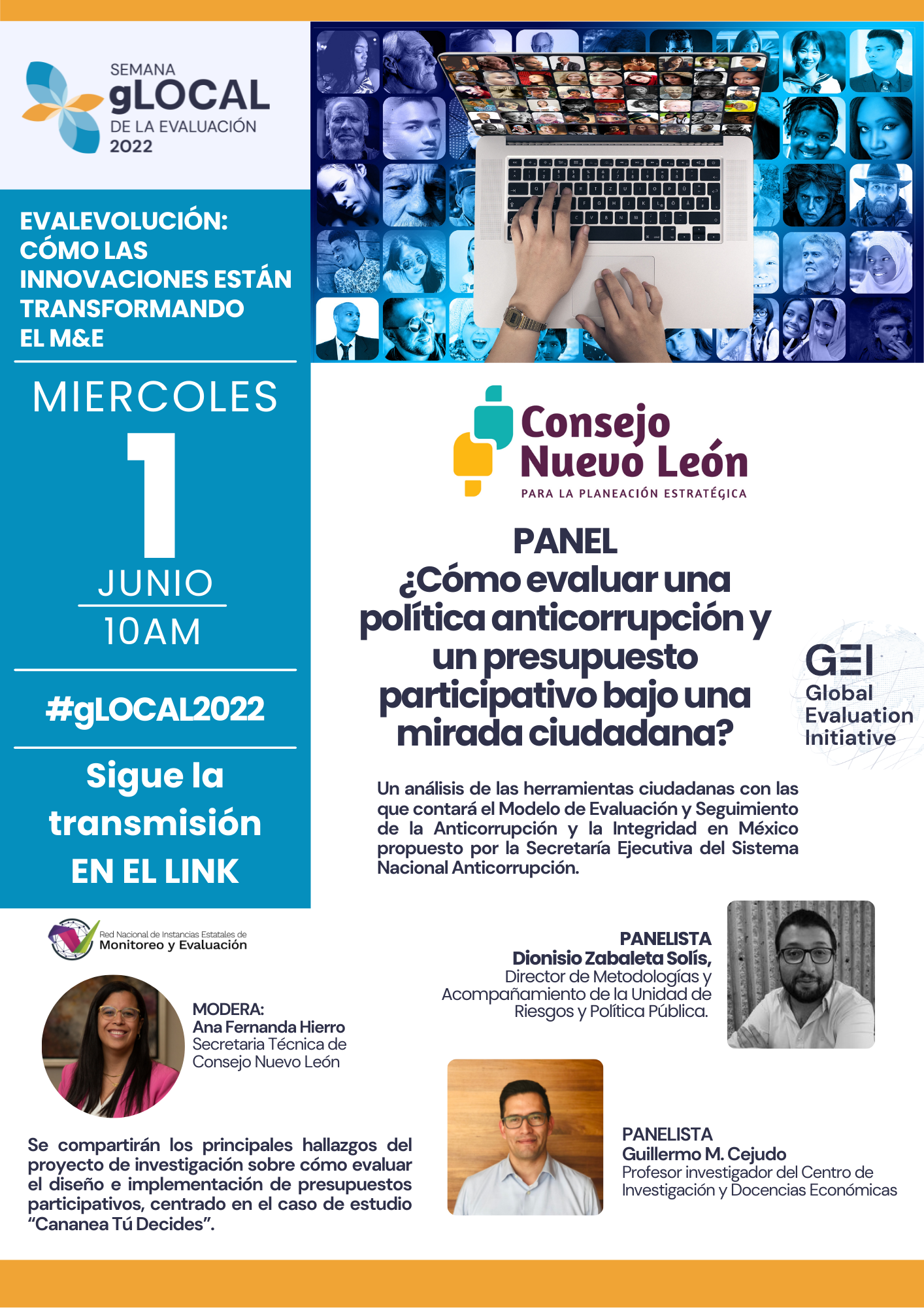 En un espacio de diálogo se analizarán las herramientas ciudadanas con las que contará el Modelo de Evaluación y Seguimiento de la Anticorrupción y la Integridad en México propuesto por la Secretaría Ejecutiva del Sistema Nacional Anticorrupción. Asimismo, se compartirán los principales hallazgos del proyecto de investigación sobre cómo evaluar el diseño e implementación de presupuestos participativos, centrado en el caso de estudio “Cananea Tú Decides”.
