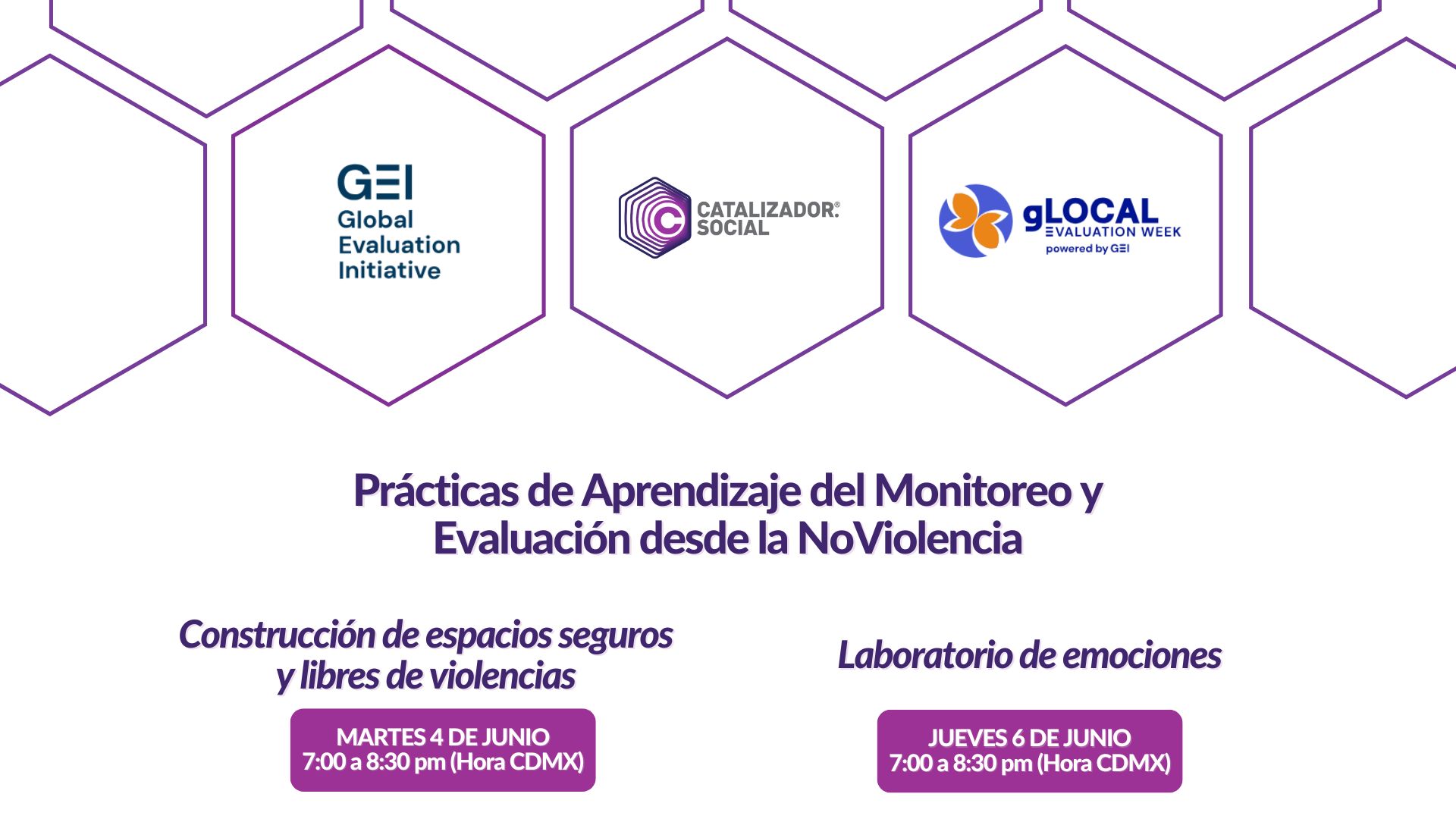 Caso Laboratorio de emociones (Campaña de comunicación por medios audiovisuales vs Actividades presenciales con estímulos de amor y felicidad, en donde se utiliza la tecnología para detección facial) Caso Construcción de espacios seguros y libres de violencias (Proceso de acompañamiento para facilitar la identificación de expresiones de violencias e impulsar acciones de paz transformadora en un centro comunitario). Conocerán las implicaciones de realizar el monitoreo y evaluación para el aprendizaje y adaptación de dos modelos de intervención que son implementados en contextos distintos pero con el mismo propósito.