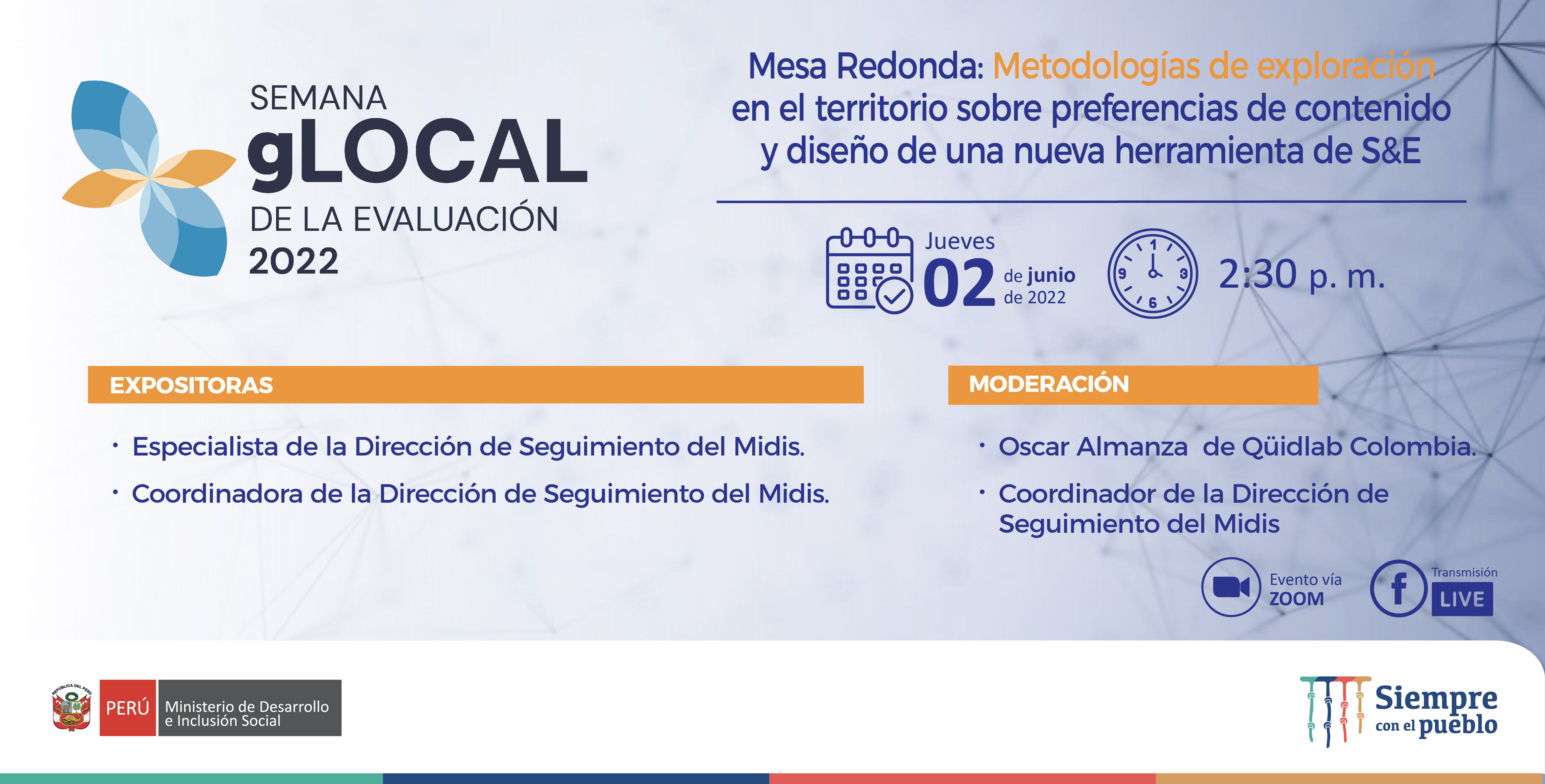 Conocerán una metodología para recoger las expectativas y necesidades de información de los usuarios para el desarrollo de herramientas de seguimiento y evaluación, así como los resultados y la importancia de su aplicación para los tomadores de decisión de las intervenciones y programas sociales en el Sector Público en beneficio de las poblaciones más vulnerables. En la implementación participaron funcionarios del Midis, representantes de la sociedad civil y de los gobiernos regionales y locales del Perú de Lambayeque, Piura, Cusco Ucayali, Loreto, Cerro de Pasco, Huánuco y Arequipa