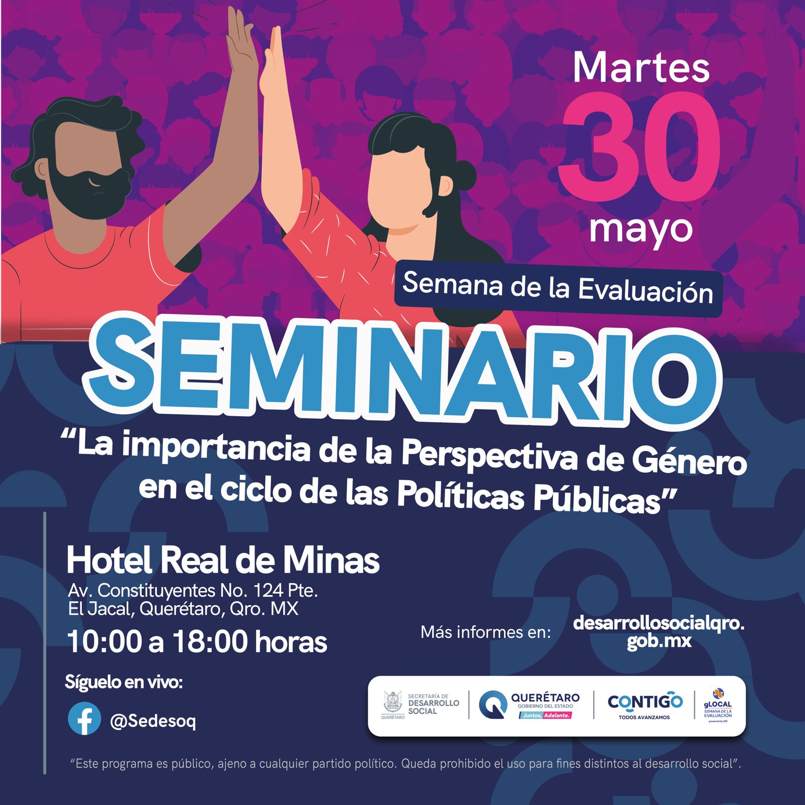El seminario dará inicio con la presentación del dignóstico de la situación actual de las mujeres en el estado de Querétaro así como de la estrategia de desarrollo social enfocada a mujeres; recibir retroalimentación mediante la mesa de diálogo constituida por integrantes de ACEVAL. A la par, los asistentes contarán con un marco de referencia del trabajo realizado en la Secretaría de Desarrollo Social del Estado para abonar en la reducción de la brecha de género.