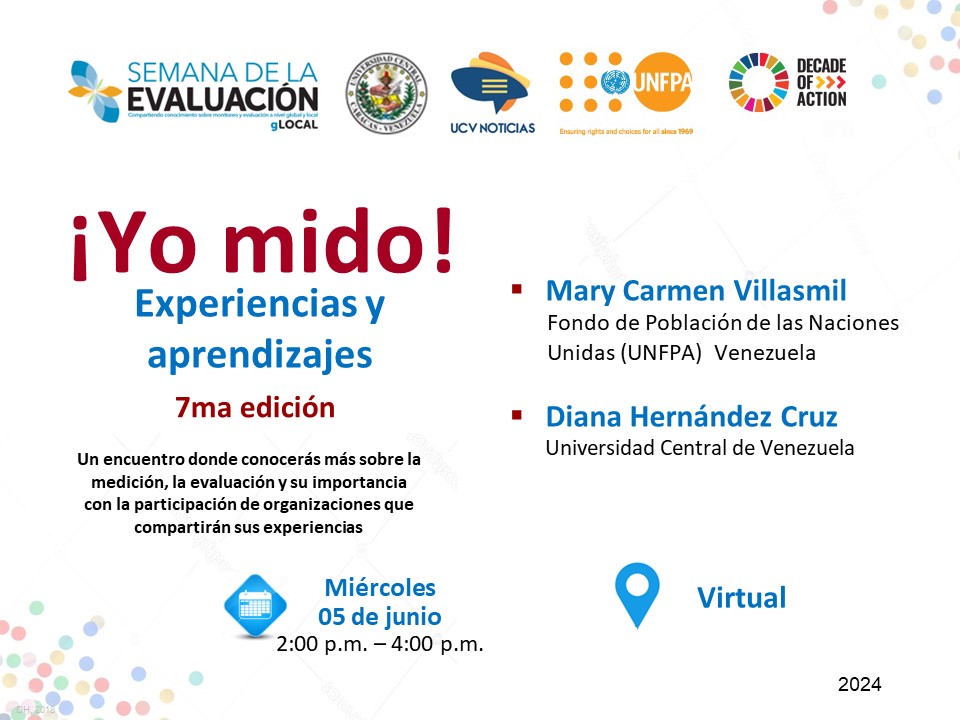 Por séptimo año consecutivo "Yo mido: experiencias y aprendizajes" será un espacio para difundir marcos teóricos, experiencias y aprendizajes de la mano de organismos multilaterales y parte de sus agencias como el UNFPA; también profesores de las áreas de evaluación de programas y proyectos y representantes de ONGs.