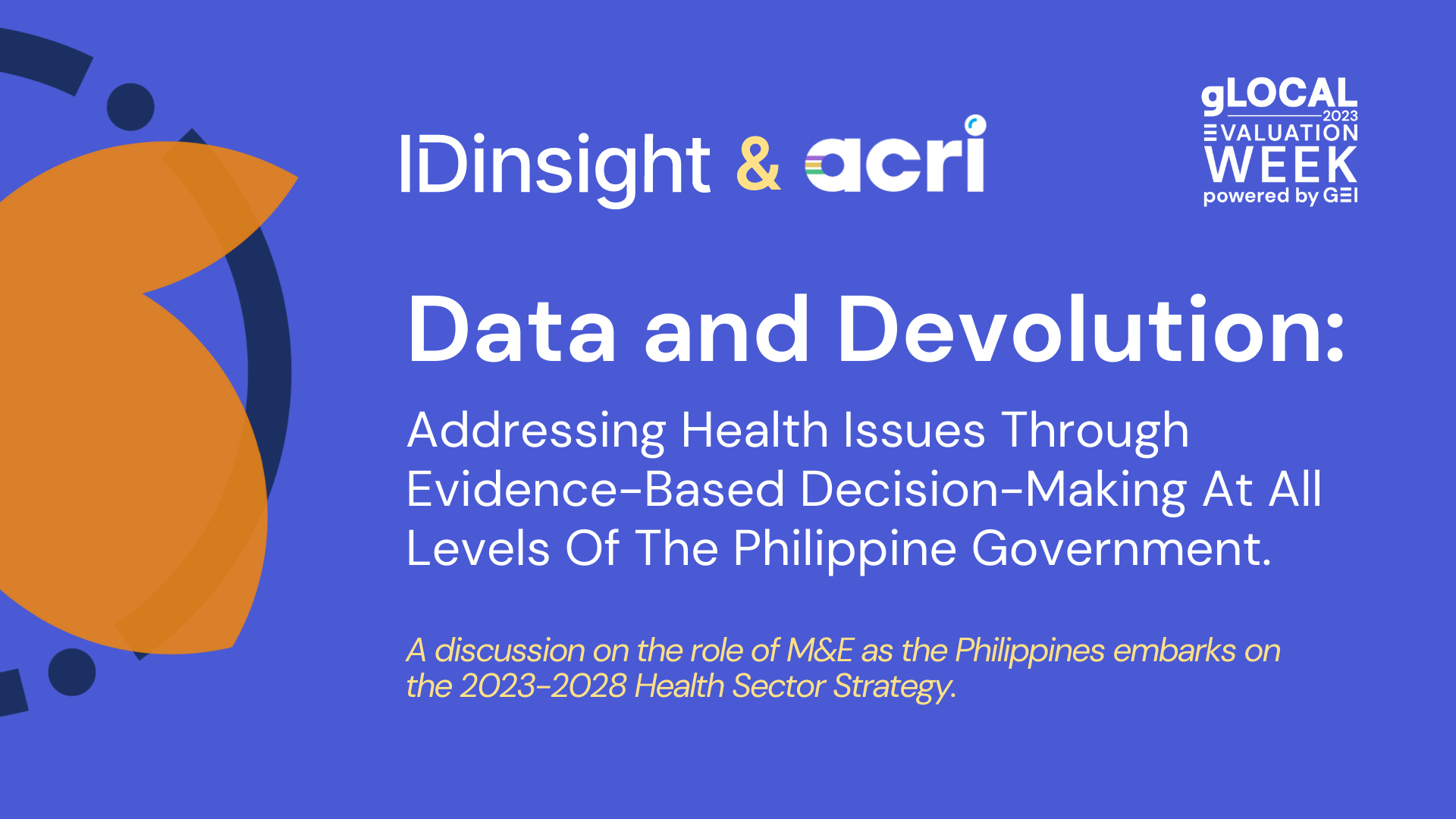 M&E is playing a key role as the Philippines embarks on the 2023-2028 Health Sector Strategy. With the recent Mandanas-Garcia Ruling giving local government more budgetary and decision-making control, all levels of government are in need of data and M&E capacity to create a culture of evidence-based decision-making for health policy; but how do we get there? This session will examine cost-effective approaches to balance the need for local, action-oriented data and national data for policy making and the need for increased collaboration in the larger health sector. This session is hosted by IDinsight and ASMPH Center for Research and Innovation.