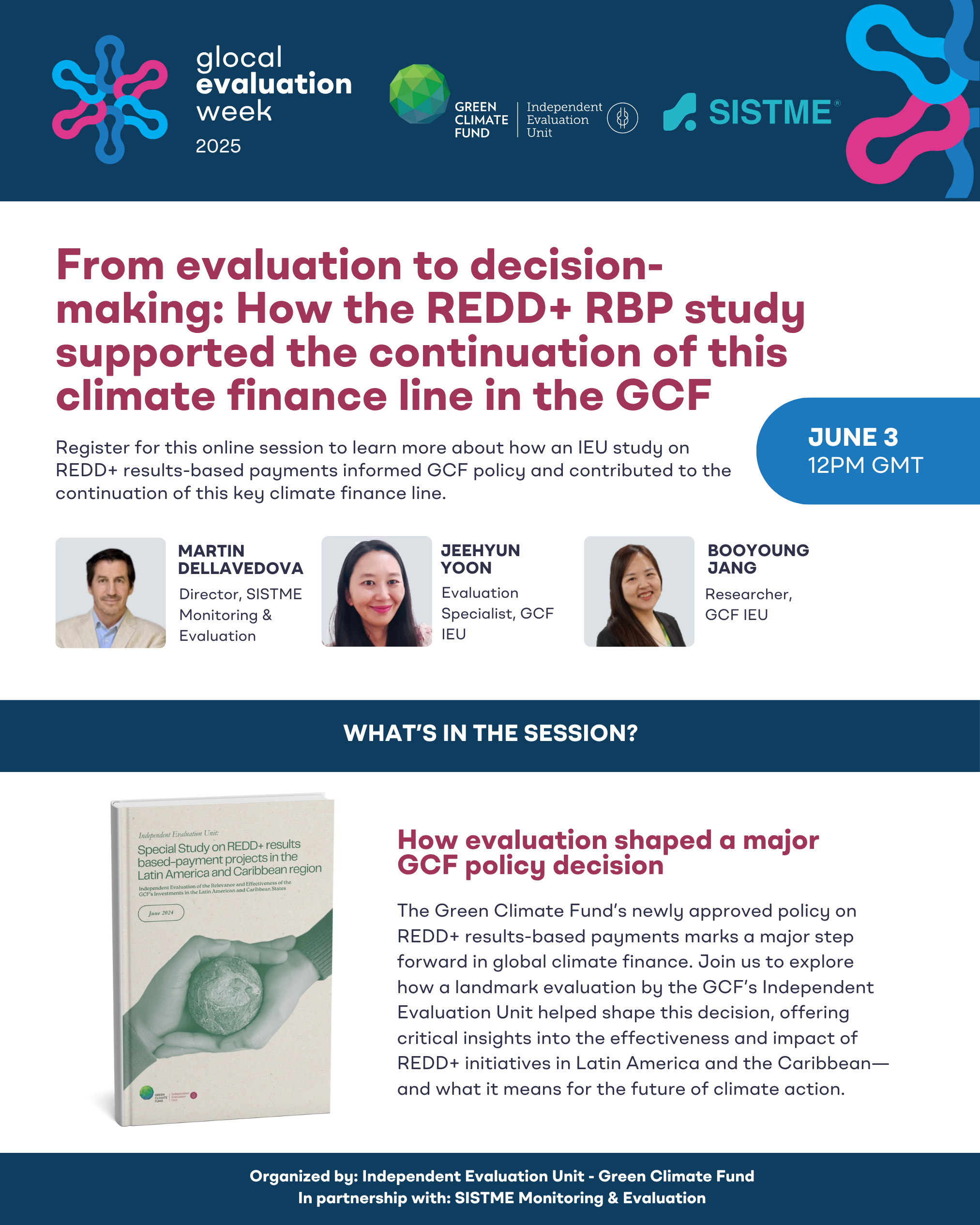 Join this session to gain first-hand knowledge of how evaluation can play a crucial role in policy formulation and the continuation of climate finance initiatives.