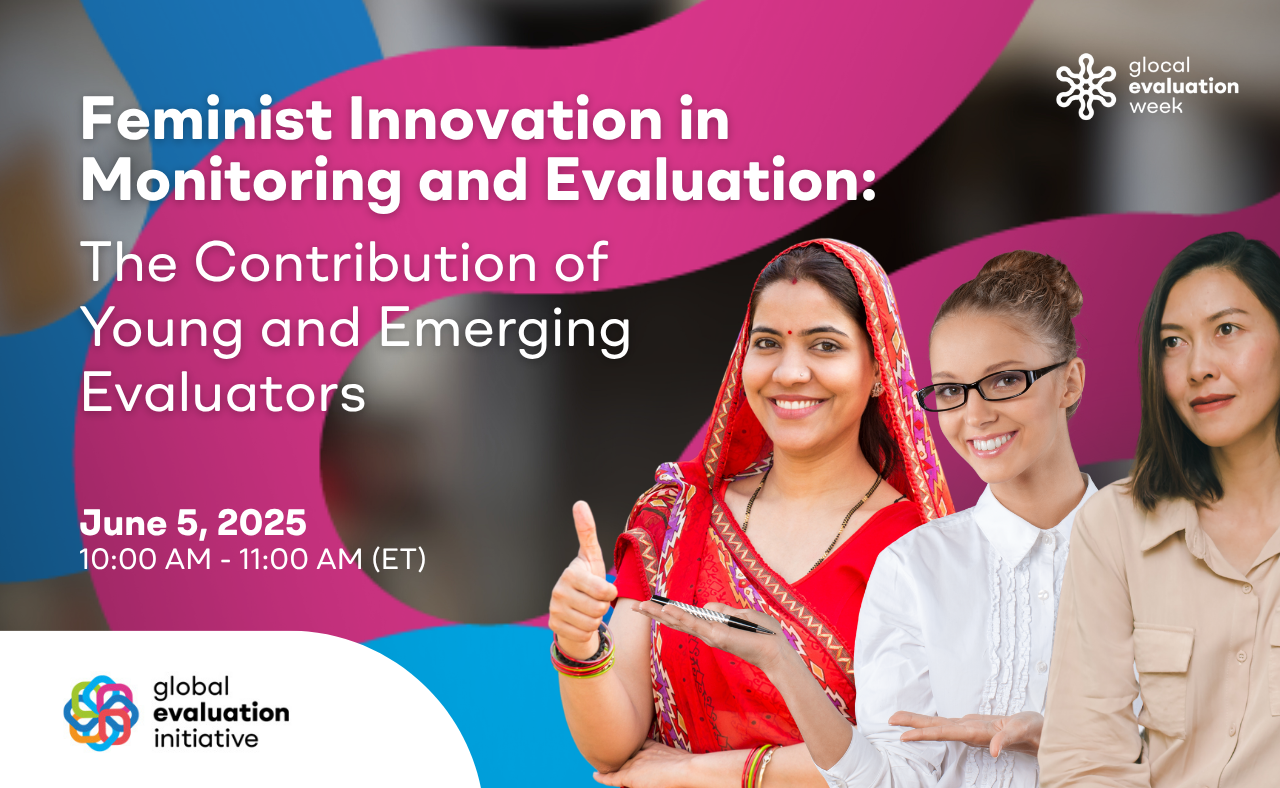 This is a global virtual event to share the projects about Feminist Innovation in Monitoring and Evaluation (FIME) practices, developed by young and emerging evaluators (YEEs) granted with the FIME Small Award for YEEs . The Feminist innovation in M&E Small Grant for Young and Emerging Evaluators is implemented jointly by the GEI and Eval Gender+ with the support of Global Affairs Canada. This effort has awarded 6 young and emerging evaluators that are currently developing their projects.