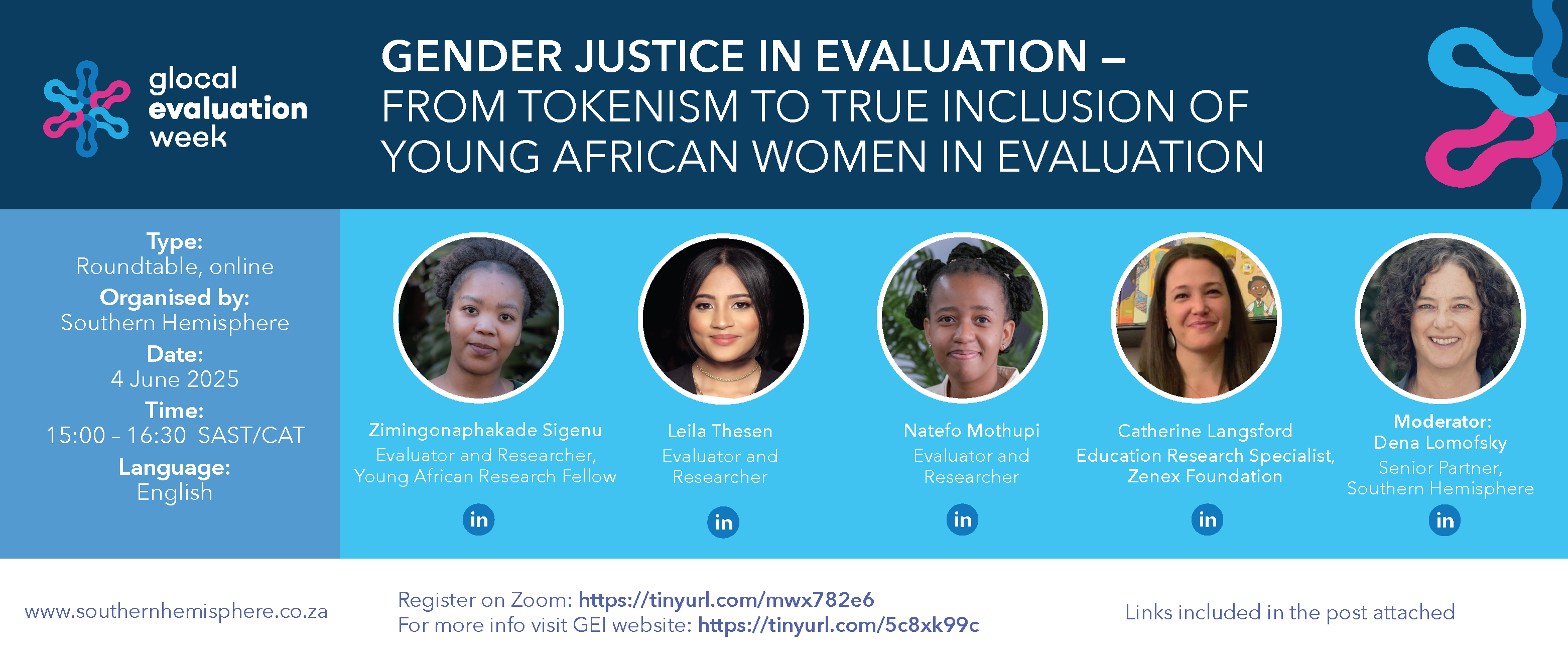 Too often, emerging evaluators — particularly young African women — are excluded from meaningful participation and leadership in the evaluation sector. By sharing both the organisational and personal journey, this session will provide tangible examples of how to shift that narrative. Southern Hemisphere’s experience offers a model for how sustained, intentional support can transform the field — ensuring it reflects the communities it serves and delivers more relevant, just, and effective evaluation practices.