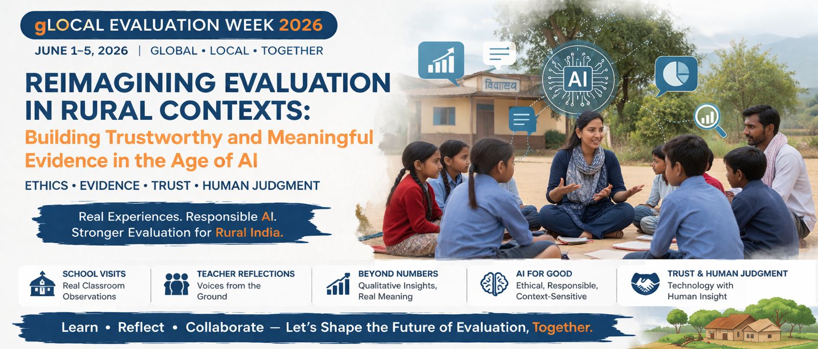 Participants will engage in an interactive session exploring how AI can strengthen evaluation in rural and diverse contexts. Through real field-based examples, discussions, and group activities, they will examine ethical challenges, data limitations, and the role of human judgment. The session will help participants understand how to use AI responsibly, interpret qualitative data meaningfully, and build trust in evidence systems while ensuring context-sensitive and credible evaluation practices.