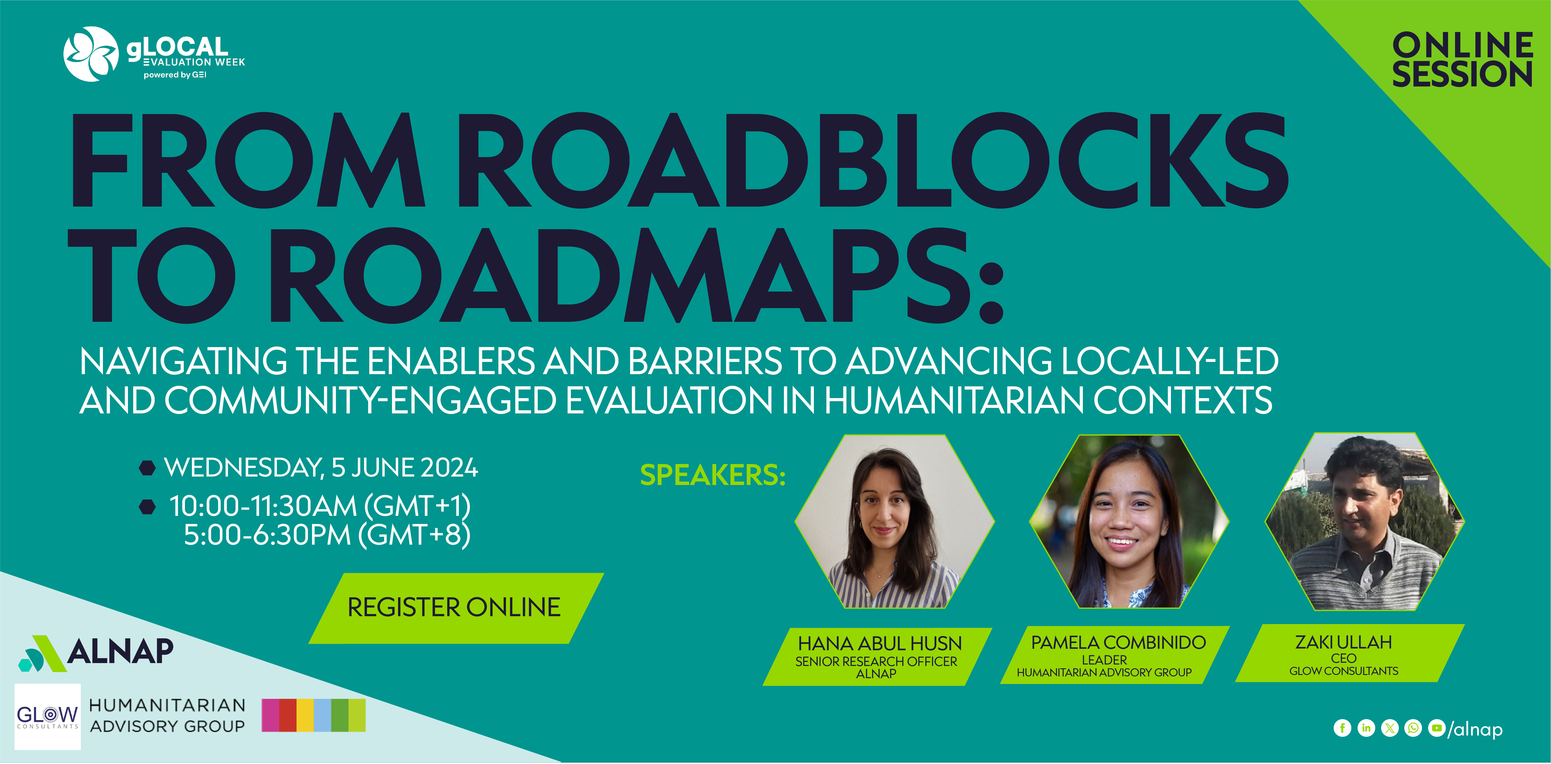 Through this session, Active Learning Network for Accountability and Performance in Humanitarian Action (ALNAP) and Humanitarian Advisory Group (HAG) will share the findings from their respective research on locally-led M&E and making evaluation findings accessible to communities (HAG, forthcoming). The panel will also feature experienced local evaluators who have engaged in this work and will speak to their rich experience of balancing ambition with realism in their locally-led M&E practices.