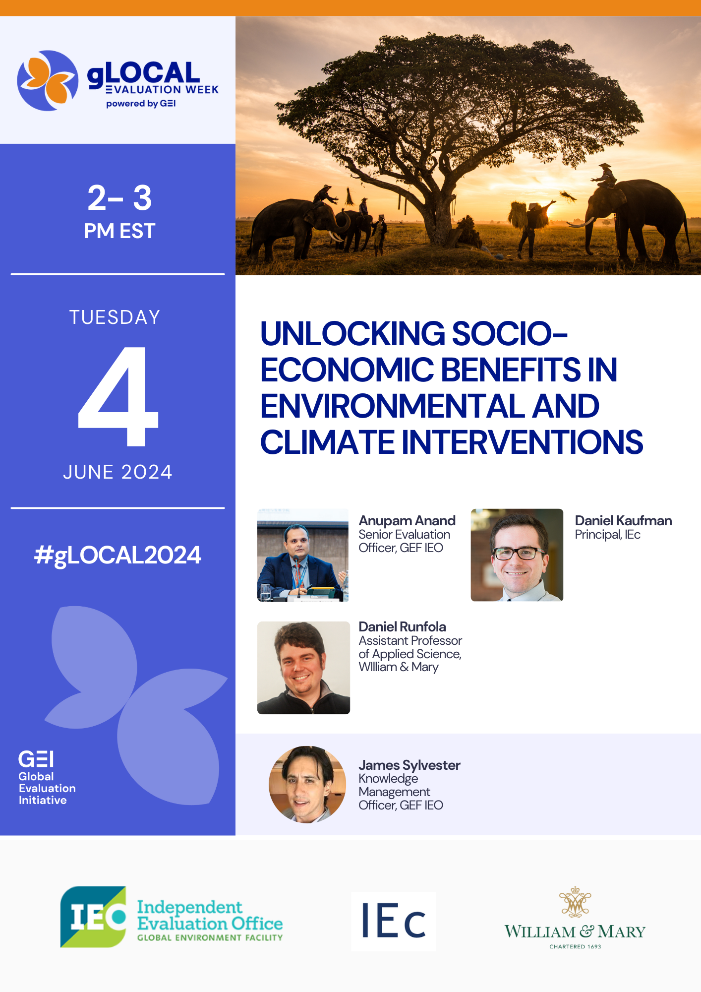 As our planet grapples with environmental degradation and climate change impacts, assessing the socio-economic benefits of interventions that address these challenges becomes crucial. However, accurately assessing the socio-economic benefits can be challenging because these benefits can be multifaceted, encompassing changes in income, livelihoods, health, and social equity. Traditional results frameworks may not fully capture this complexity, and isolating the impact of environmental interventions from other social and economic factors can be difficult. This session tackles this very issue by showcasing mixed-method approaches used by major climate and environmental funds. We'll discuss methods that go beyond traditional measures, the value of field surveys, and the power of combining various data sources like surveys, geospatial information, and satellite remote sensing and the application of machine learning. Drawing insights from the evaluation efforts of prominent environmental funds and academic institutions in multiple geographies, this session empowers the evaluation community to gauge the socio-economic impact of interventions accurately. It encourages a more comprehensive approach to monitoring the outcomes of environmental and climate initiatives.