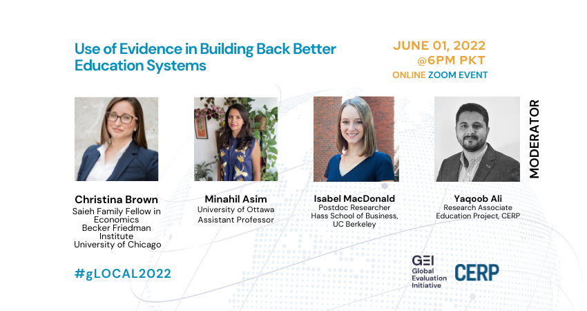 | Isabel MacDonald | Postdoc Researcher | She will discuss her recent work in Pakistan where she is leading a large-scale Randomized Controlled Trial on accelerated learning. She will talk about the innovative approach of pivoting technology for collecting and using data in her study and the challenges that come with it. |