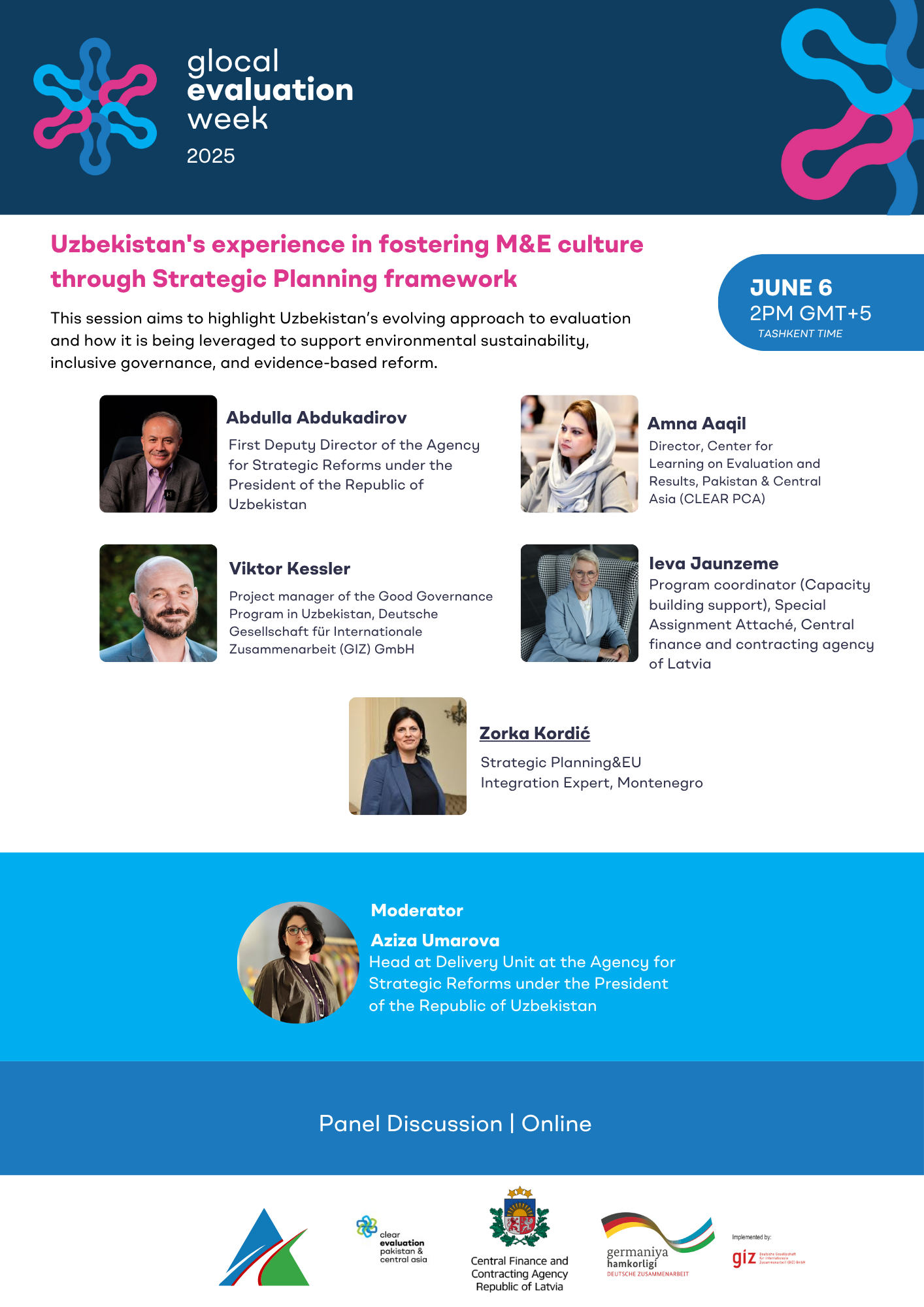 This session aims to highlight Uzbekistan’s evolving approach to evaluation and how it is being leveraged to support environmental sustainability, inclusive governance, and evidence-based reform. Specifically, it will: