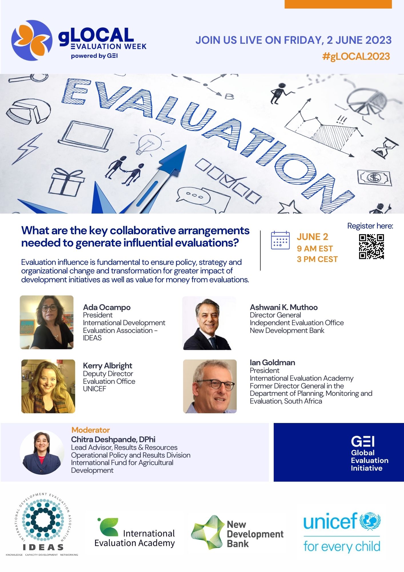 Two of the speaks have more than 30 years each of development evaluation-related experience. They are Ada Ocampo (President of IDEAS) and Ashwani Muthoo (Director General of the BRICS New Development Bank). Other reputed speakers will also be included in the discussion.