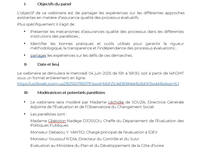Afin de favoriser la mutualisation des expériences et le partage des pratiques, ce webinaire, qui s’inscrit dans la semaine gLOCAL organisée par la Global Evaluation Initiative (GEI) de la Banque Mondiale, rassemblera des panélistes issus d’institutions de l’Afrique qui viendront présenter les dispositifs d’assurance qualité mis en œuvre dans leurs structures respectives.