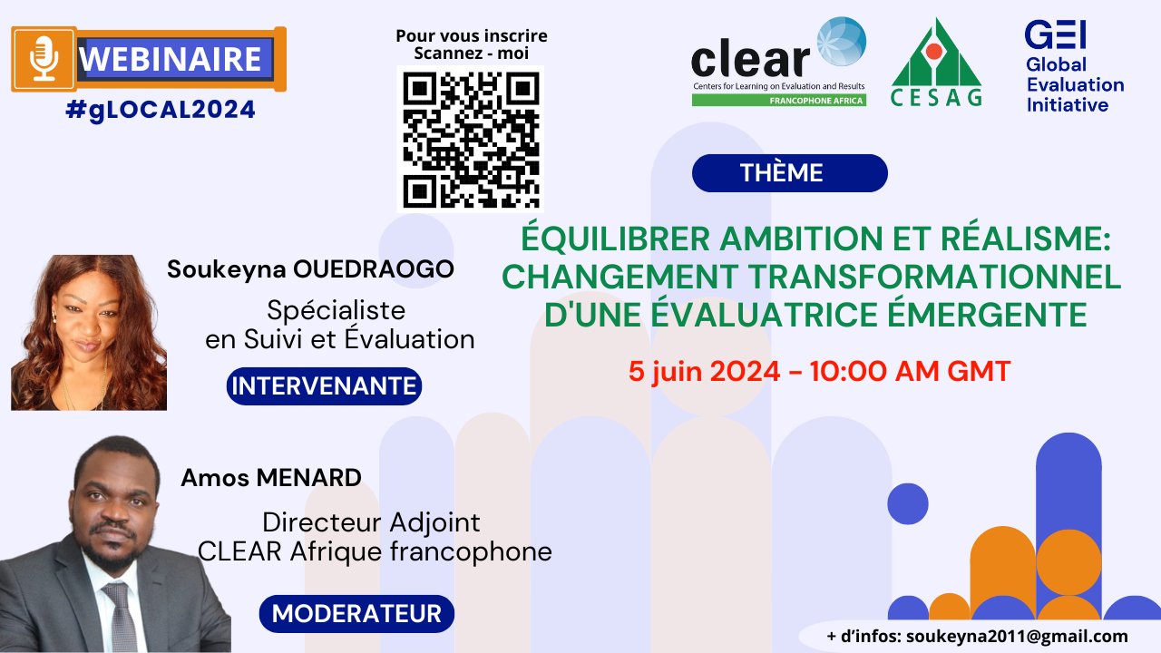 Les participants exploreront le parcours d’une évaluatrice émergente confrontée à la complexité du terrain. Ils apprendront à équilibrer les idéaux et la réalité en S&E, à surmonter les obstacles pratiques et à appliquer des leçons de terrain pour façonner leur propre voie dans le domaine. Des échanges interactifs enrichiront leur compréhension des enjeux actuels et futurs en évaluation.
