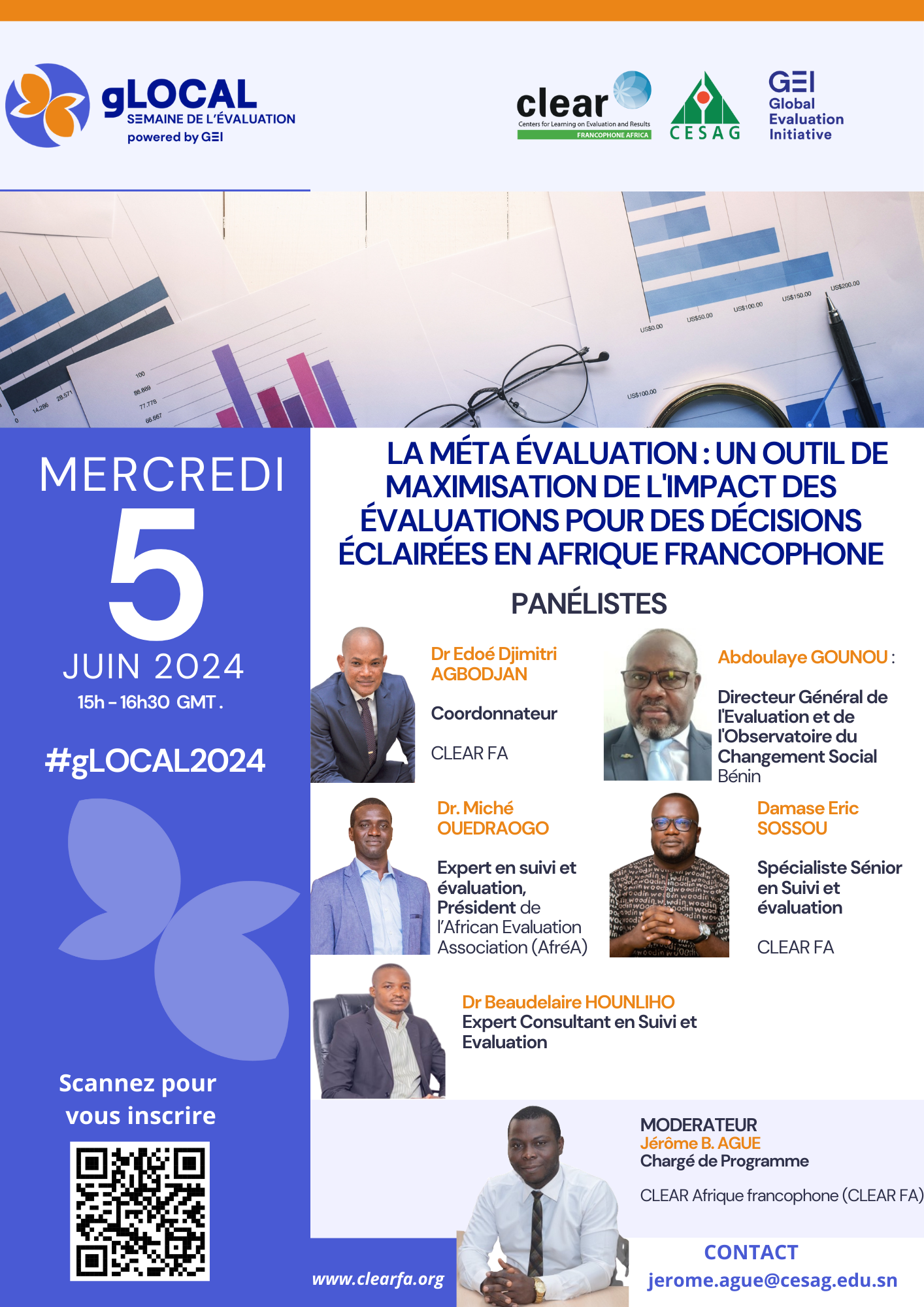 L’objectif de ce panel est de promouvoir une compréhension approfondie et une utilisation efficace de la méta-évaluation comme outil stratégique pour améliorer les pratiques d'évaluation et renforcer l'impact des interventions de développement en Afrique francophone.