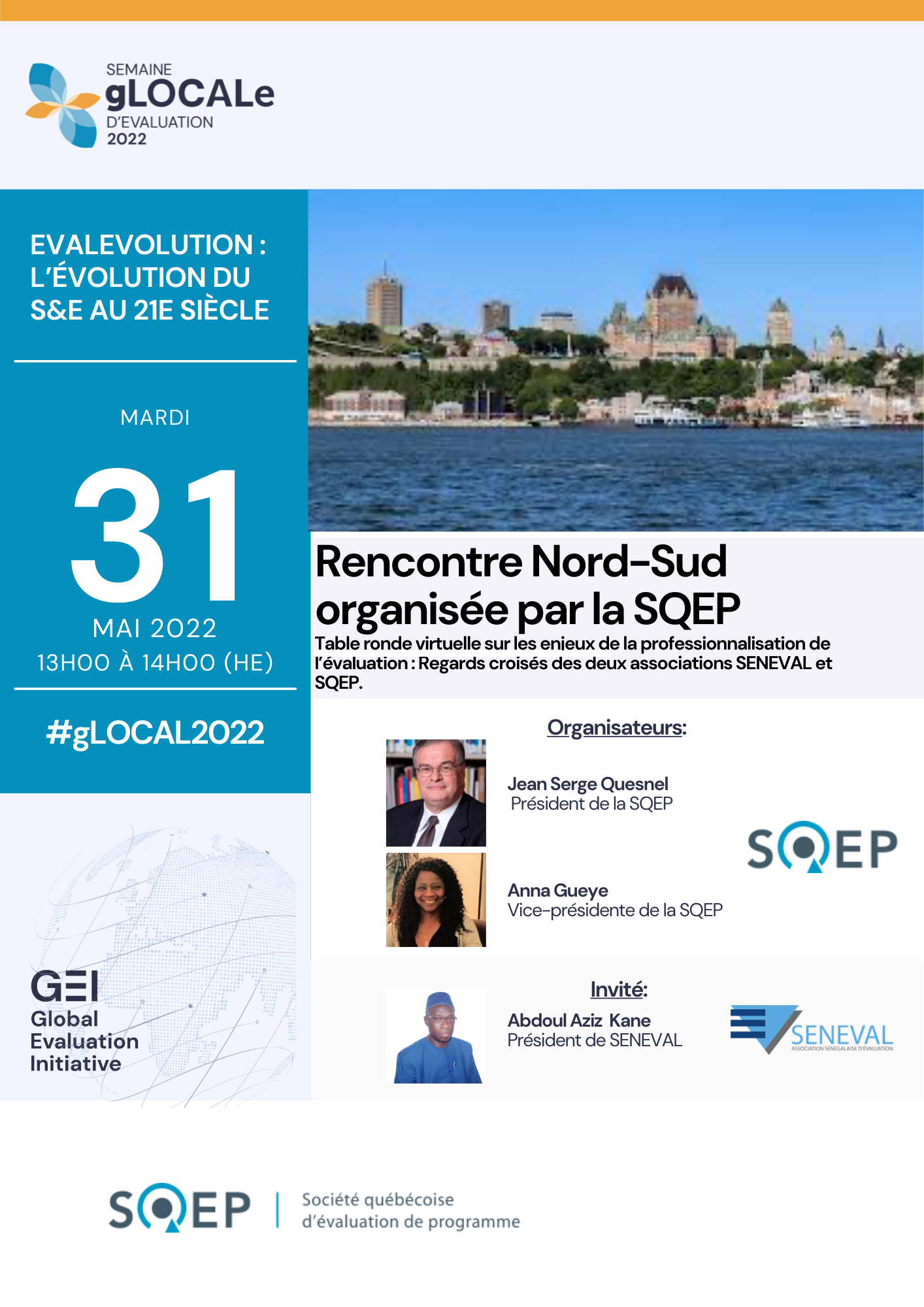 Sous forme de Table ronde, il s’agit de regards croisés sur les défis de la professionnalisation de l’évaluation : Retours d’expériences des deux organisations : la SQEP et la SENEVAL.