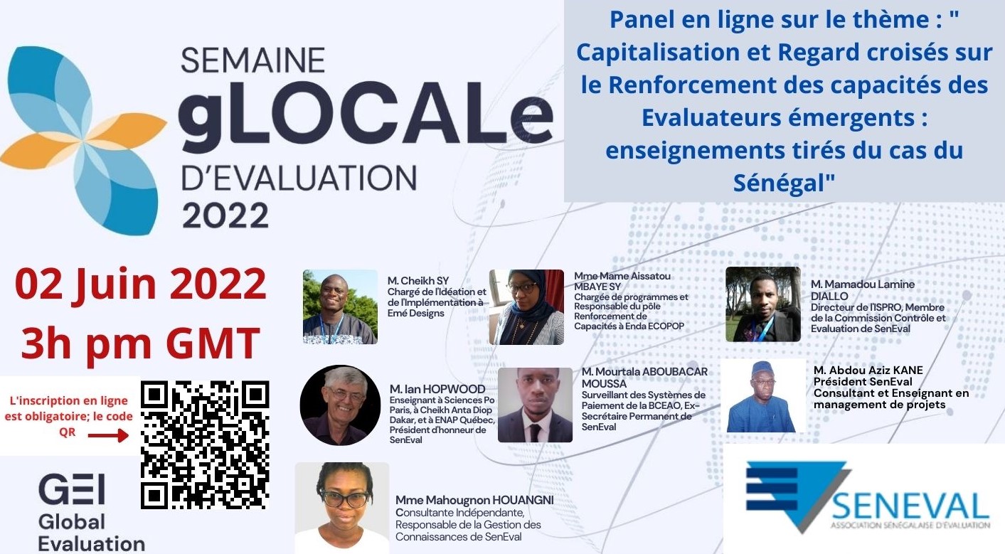 Le Programme de Renforcement de capacités des Evaluateurs émergents (PRC) de SenEval œuvre pour le développement personnel et professionnel des évaluateurs émergents. L’initiative a connu plusieurs éditions depuis 2017, avec un fort accent sur le mentorat. Ce panel sera un échange interactif sur les enseignements tirés au Sénégal et fournira des conseils et orientations pratiques permettant aux participants d’améliorer ou mettre en place des initiatives semblables.