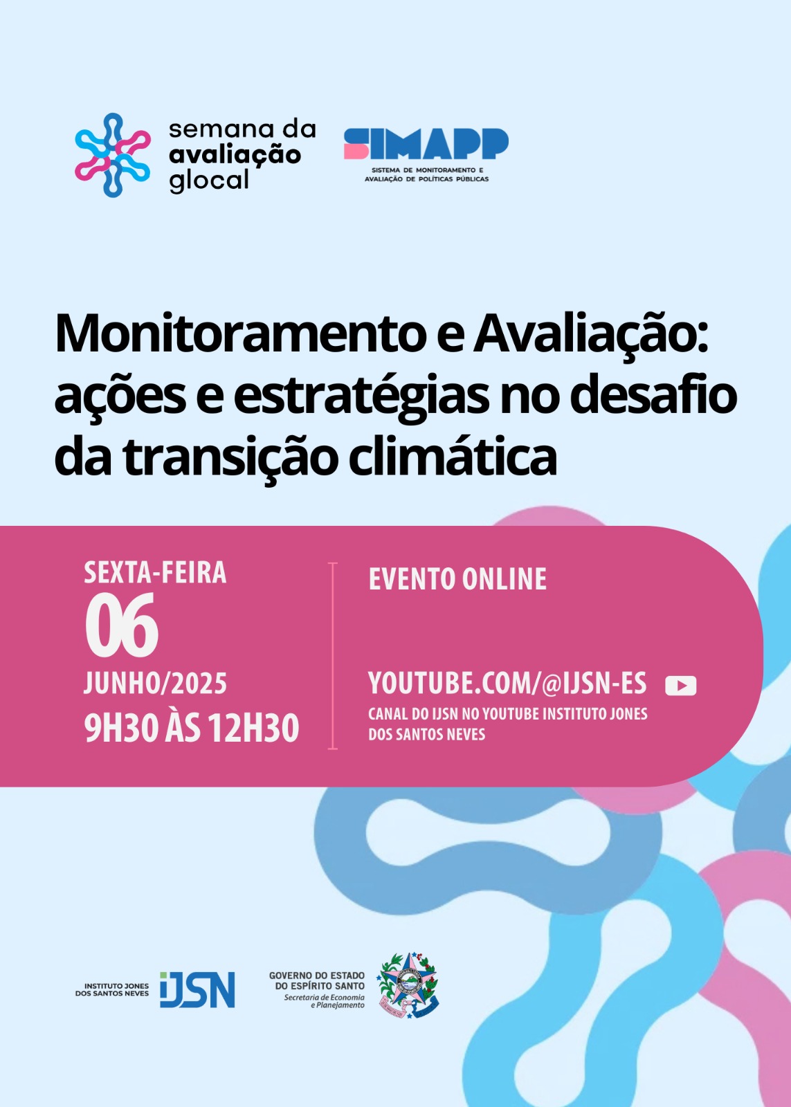 O painel visa integrar conteúdos transversais ao enfrentamento das mudanças climáticas no estado do Espírito Santo – Brasil, entendendo o Monitoramento e Avaliação como plano de fundo para o planejamento estratégico e orçamentário, pelo qual se visa implementar e aprimorar políticas públicas com base em evidências científicas. O diálogo é definido por pesquisadores, acadêmicos e gestores, a fim de alcançar aspectos de uma discussão complexa; e é guiado pelas experiências adquiridas pelo SiMAPP, com a avaliação do Programa Capixaba de Mudanças Climáticas e demais projetos alinhados à temática.