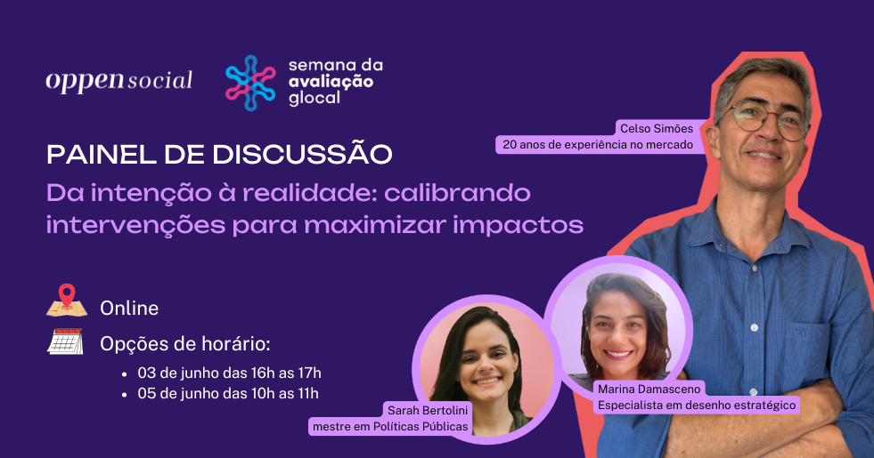 Da intenção à realidade: calibrando intervenções para maximizar impactos! Você sabe, com exatidão, o quanto as intervenções do seu programa social estão transformando vidas? Avaliar impacto vai muito além de aplicar questionários e medir indicadores — trata-se de construir evidências sólidas que sustentem decisões, otimizem recursos e ampliem o alcance social. Neste painel de discussão, vamos explorar os principais passos para preparar sua organização para uma Avaliação de Impacto eficaz e estratégica.