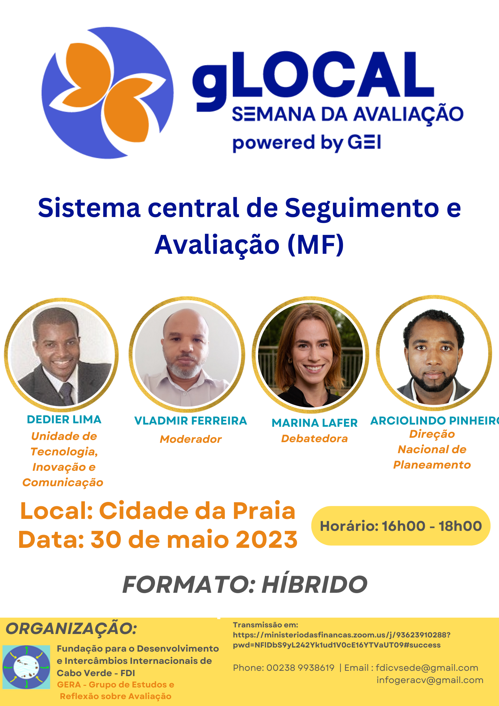 | Dedier Lima (MF) | Dr. | Atualmente é o Coordenador da Unidade de Tecnologia, Inovação e Comunicação do Ministério das Finanças de Cabo Verde, unidade responsável por gestão das TIC do Ministério. Dedier Lima é Mestre em Ciências da Computação pela Universidade Federal do PARÁ-Brasil. Este é fascinado pela ciência dos dados e pelas formas de organiza-los e analisa-los inteligentemente. A carreira profissional de Dedier Lima no Brasil iniciou-se como estagiário no Centro de Tecnologia de Informação (CTIC), um centro focado na implantação de tecnologias na Universidade Federal e no Estado do PARÁ- Brasil. Em 2009 trabalhou no Ministério das Finanças de São Tomé e Príncipe. Através das Finanças de STP, implementou a infra-estrutura tecnológica e aplicações de integrações para suportar o sistema administrativo e financeiro do estado são-tomense. Em 2011 emigra-se a Cabo Verde para trabalhar como analista/programador na UMS-Finanças de Cabo verde, em que se juntou a equipa de desenvolvimento do projeto Bancarização do Tesouro. |