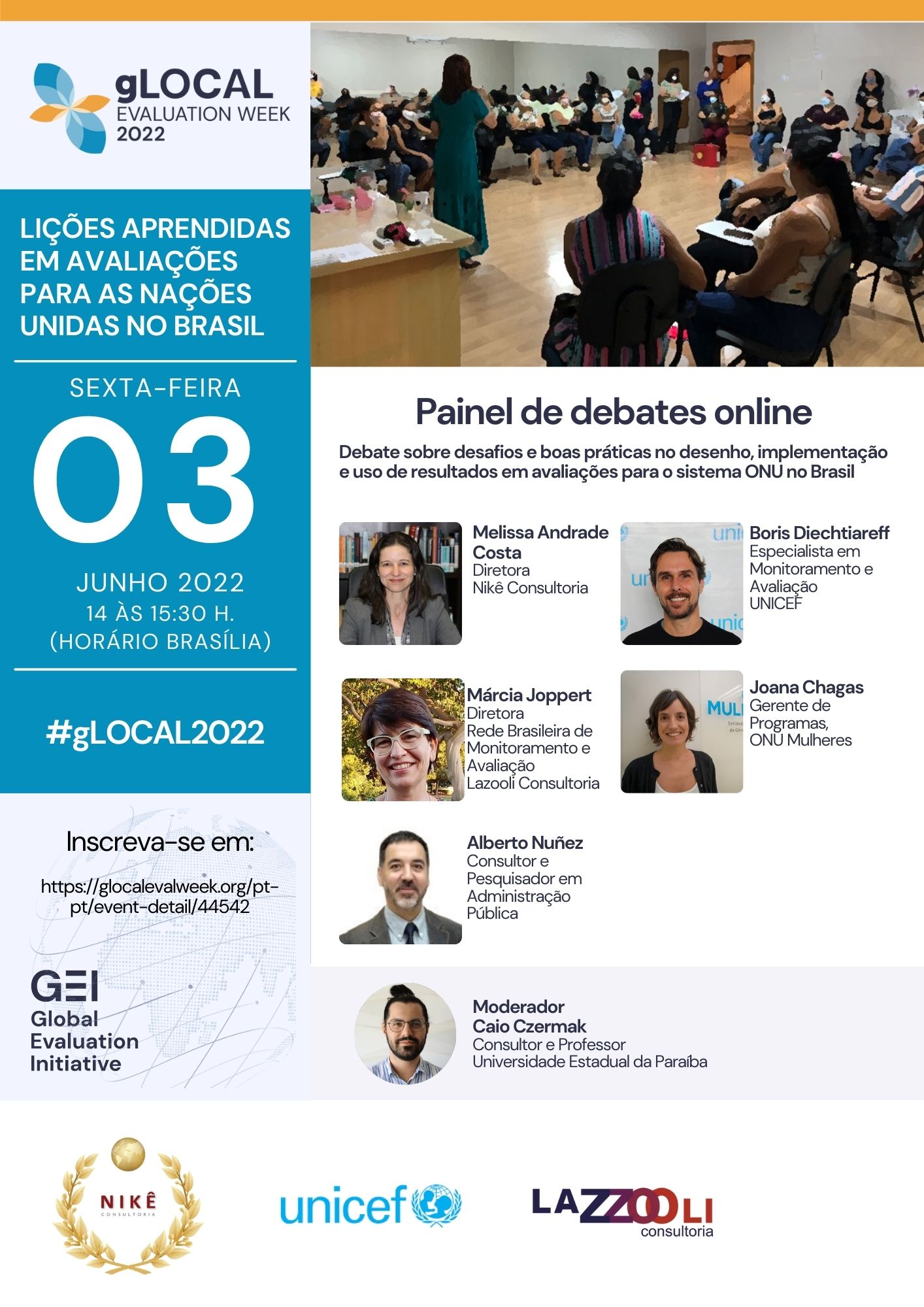 O painel apresentará experiências de avaliação para o sistema das Nações Unidas no Brasil, discutindo lições aprendidas na metodologia, condução de equipes, apresentação e disseminação de resultados com vistas a gerar aprendizado para futuras avaliações para as Nações Unidas no país e em outros contextos.