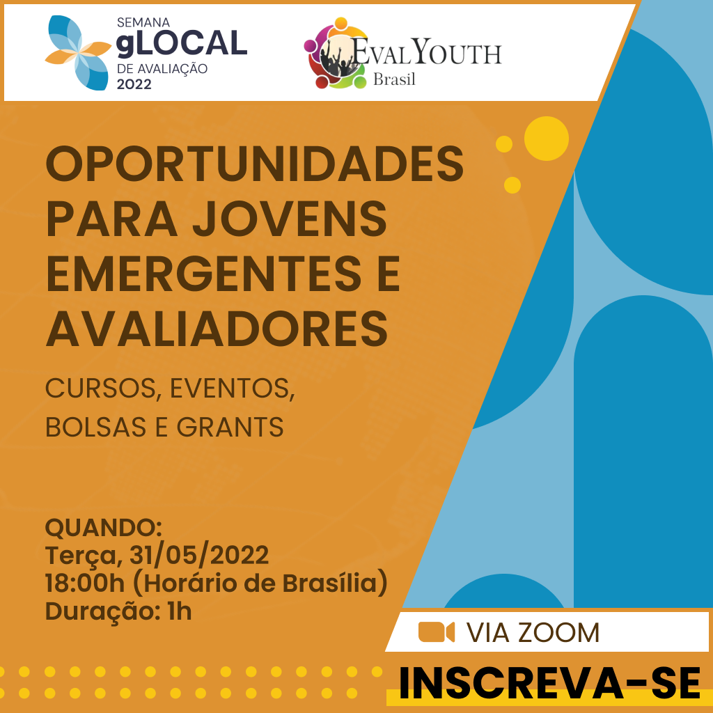 Além disso, é uma oportunidade de fazer networking e conhecer a atuação da EvalYouth Brasil. Qualquer interessado/a é bem vindo/a!